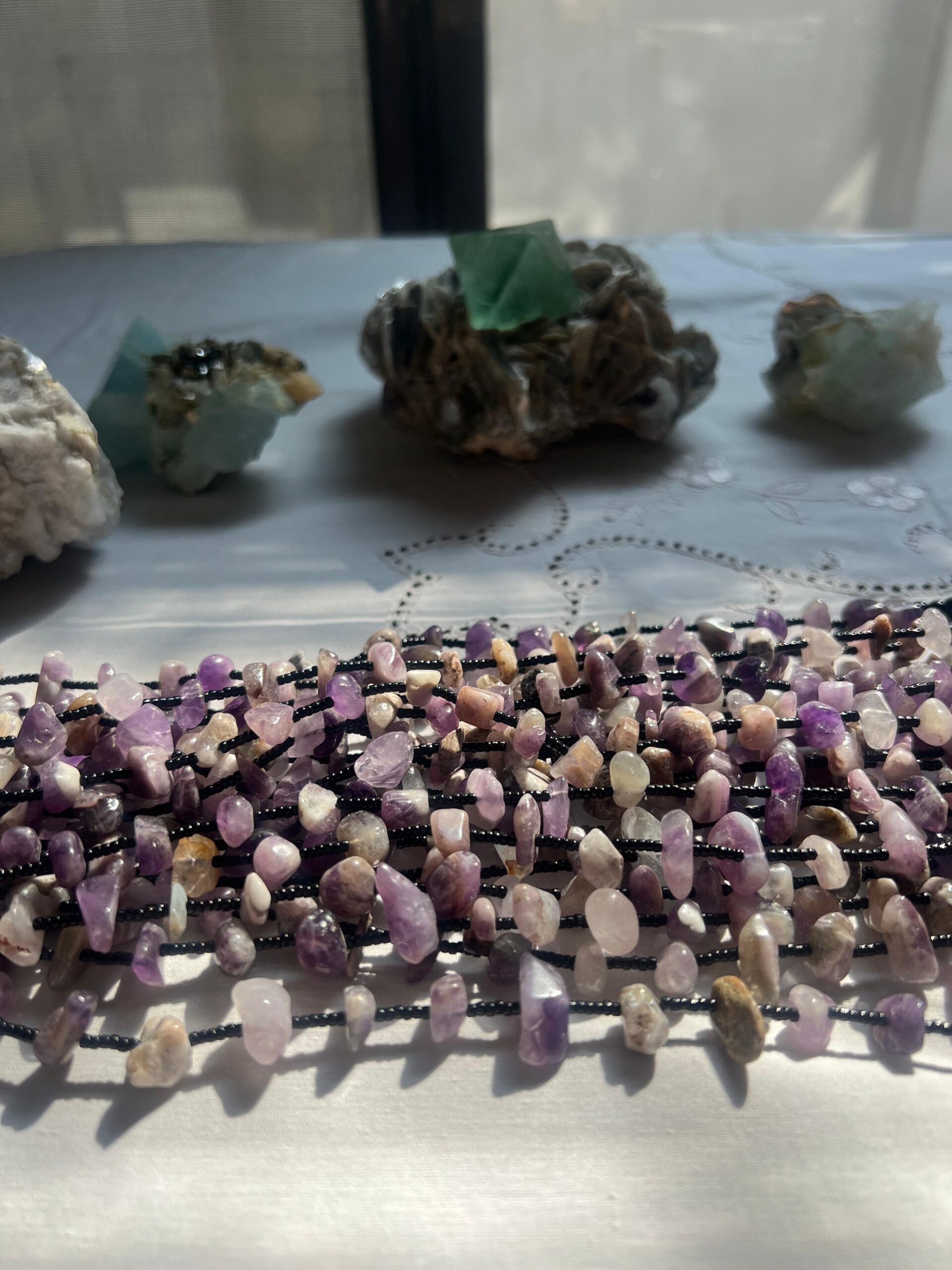 A captivating and regal necklace fashioned from genuine amethyst, the premier stone of spiritual clarity and peace. These beads are precision-cut with diamond-style facets to unlock the stone’s natural brilliance, casting beautiful violet sparks and lavender shadows. With its rich, meditative color, this necklace serves as both a powerful protective talisman and a sophisticated accent for evening or professional wear.
