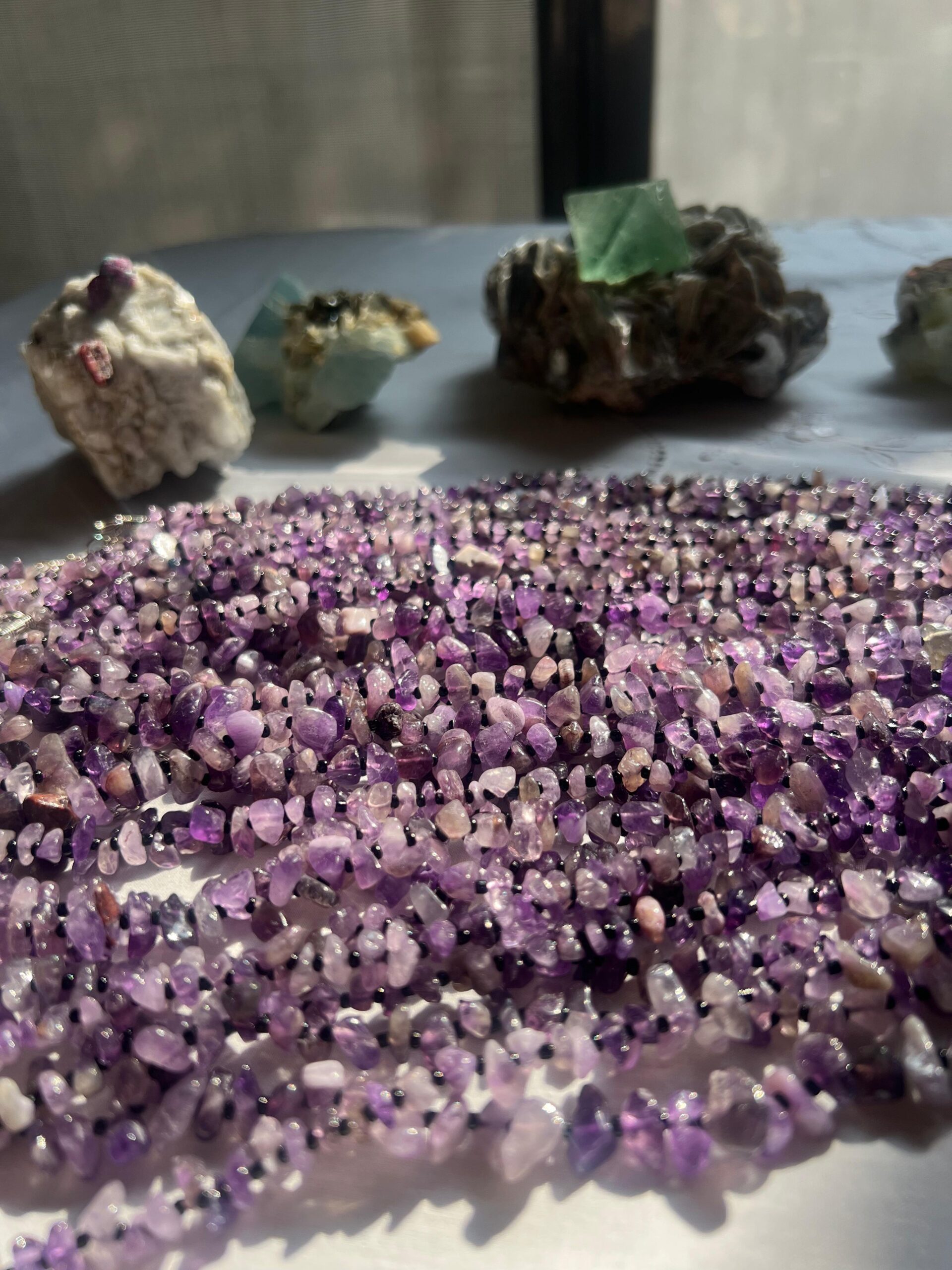 A captivating and regal necklace fashioned from genuine amethyst, the premier stone of spiritual clarity and peace. These beads are precision-cut with diamond-style facets to unlock the stone’s natural brilliance, casting beautiful violet sparks and lavender shadows. With its rich, meditative color, this necklace serves as both a powerful protective talisman and a sophisticated accent for evening or professional wear.